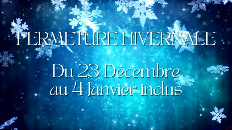 Votre club fermera ses portes du mardi 23 au dimanche 4 janvier inclus.